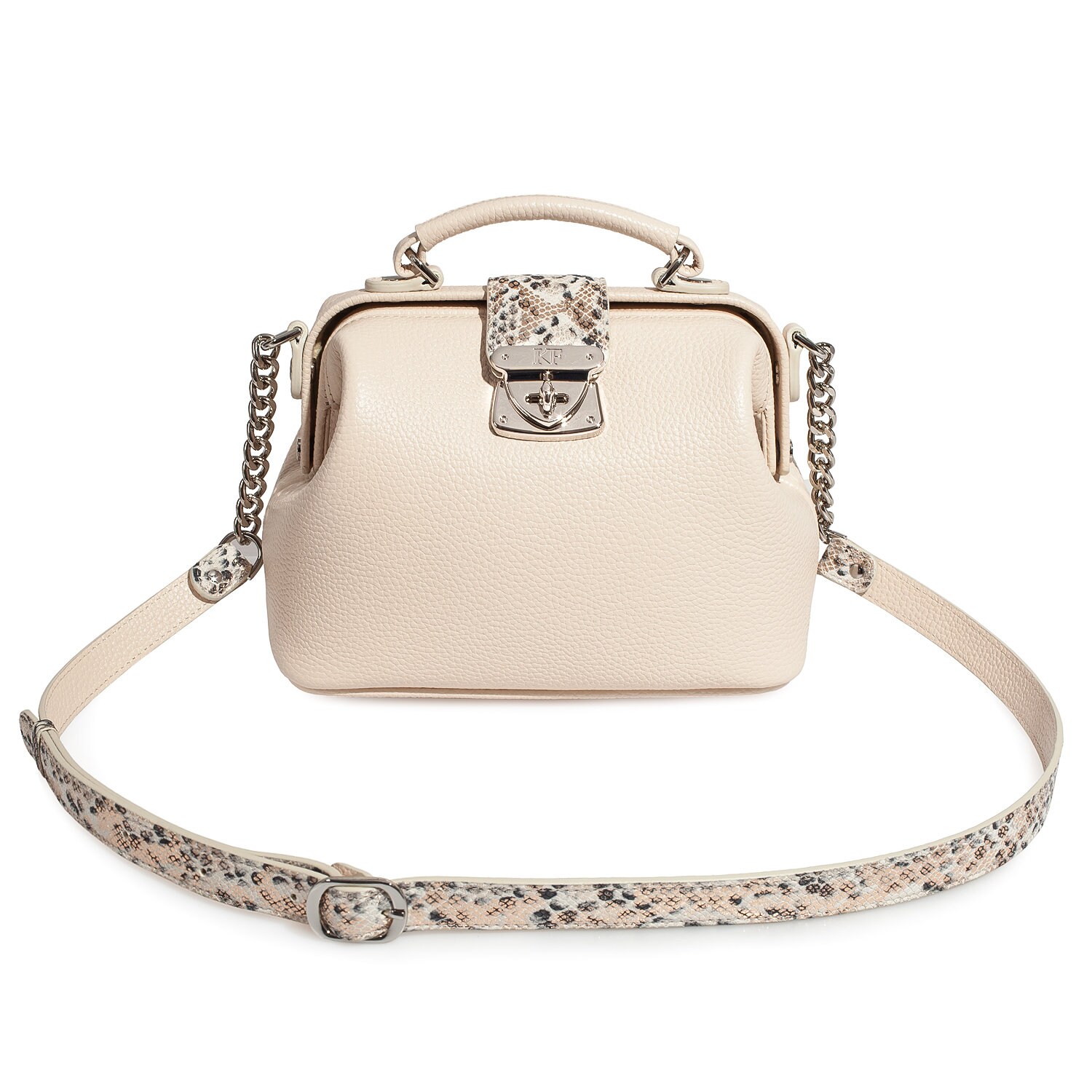 Leather doctor bag for women, Light beige Leather Shoulder Bag, Women's Leather doctor bag, Leather bag KF-4178