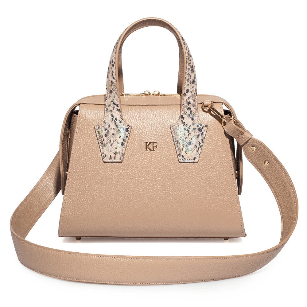 Leather Top Handle Bag, Beige Leather Handbag Top Handle, Women's Leather Bag KF-3615