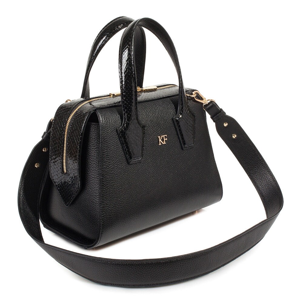Leather Top Handle Bag, Black Leather Handbag Top Handle, Women's Leather Bag KF-3862