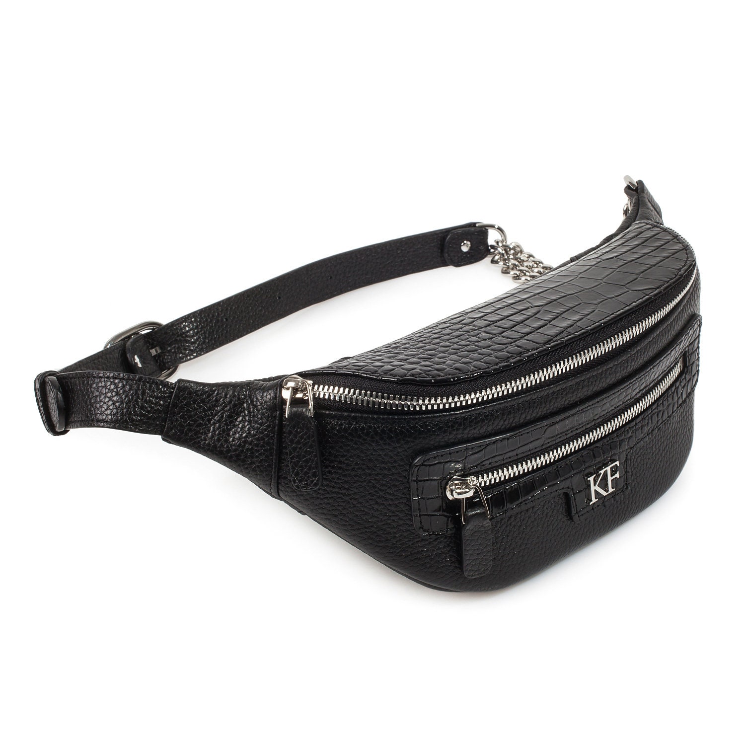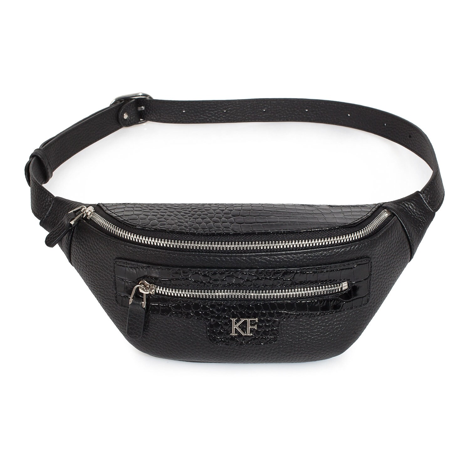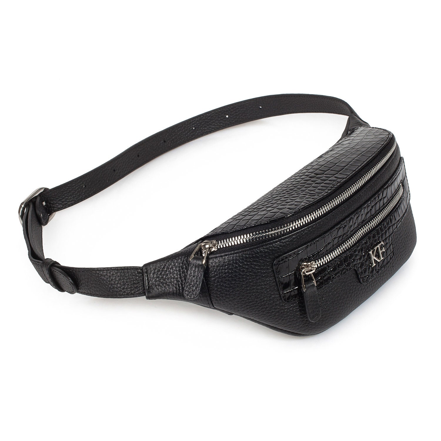 Leather women's Banana bag, Black Leather Banana bag, Women's Banana bag, Leather belt Bananka bag KF-4393