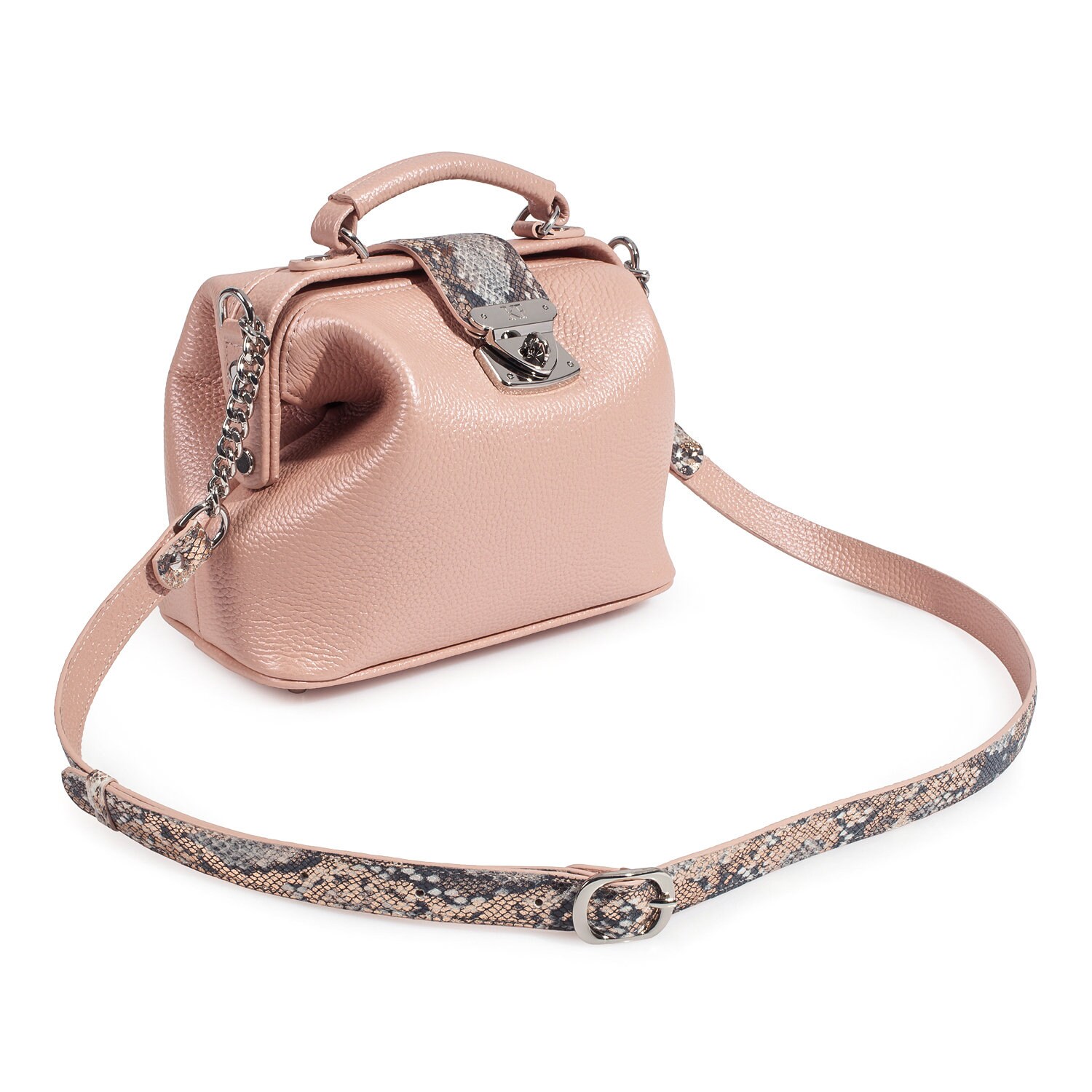 Beige pearl genuine leather handbag from ukrainian designer Katerina Fox. This model is designed for women who appreciate the sleek design combined with functionality and comfort. High-quality and reliable hardware ensure long service bags. The internal space of a bag is equipped with one spacious compartment and two patch-pockets and one zipper pocket. The bag is closed with a clasp. The bottom of the bag is protected with metal legs. There is a long handle that allows you to wear the bag on the shoulder. The kit also includes a storage bag.