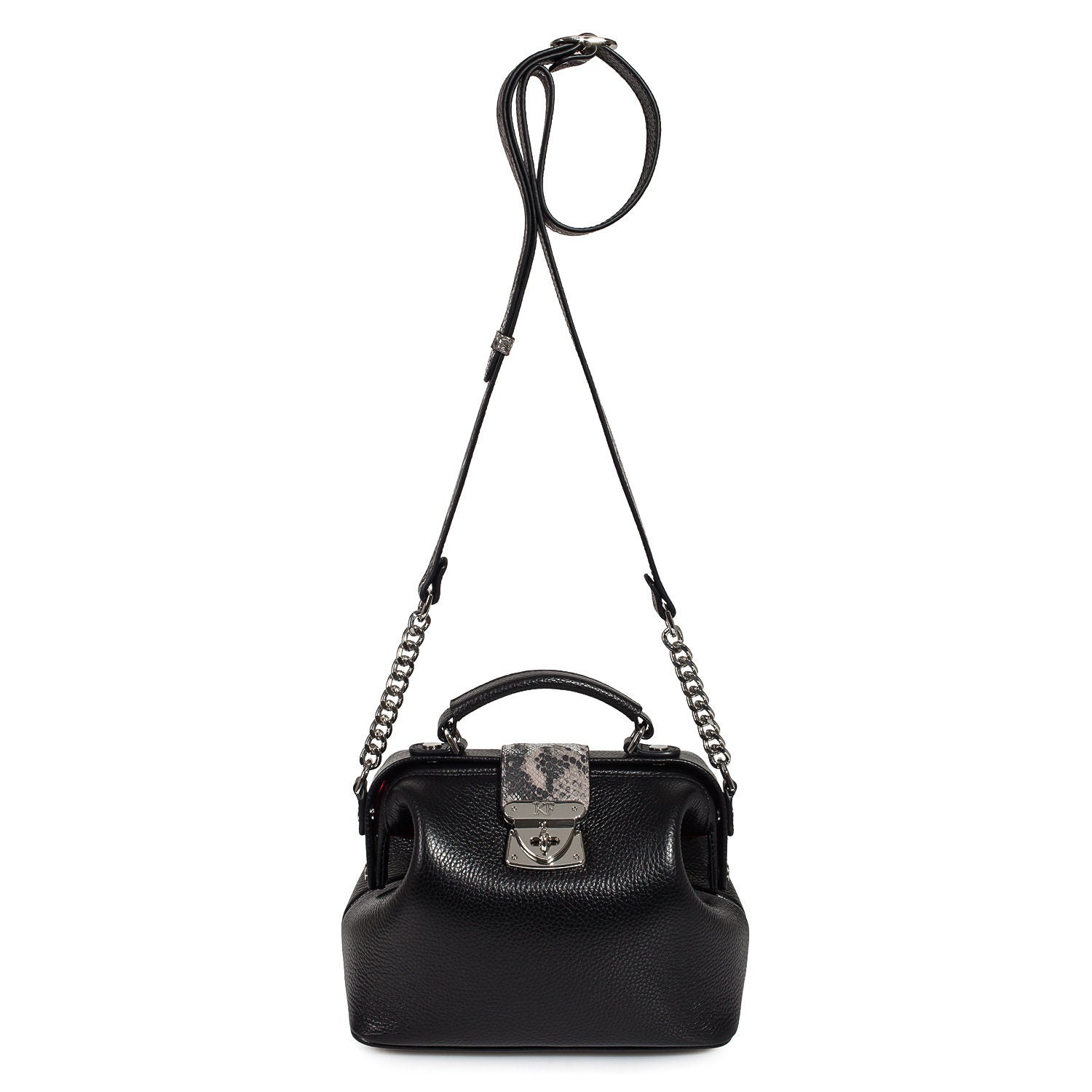 Black genuine leather handbag from ukrainian designer Katerina Fox. This model is designed for women who appreciate the sleek design combined with functionality and comfort. High-quality and reliable hardware ensure long service bags. The internal space of a bag is equipped with one spacious compartment and two patch-pockets and one zipper pocket. The bag is closed with a clasp. The bottom of the bag is protected with metal legs. There is a long handle that allows you to wear the bag on the shoulder. The kit also includes a storage bag.