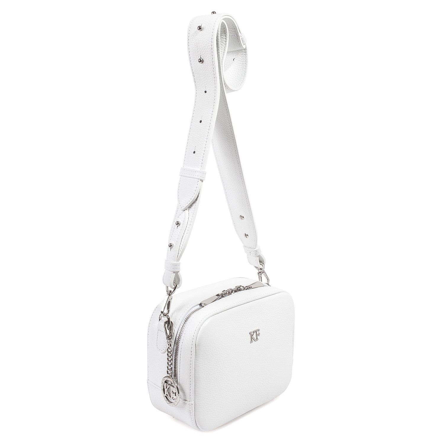 Light beige genuine leather woman shoulder bag from ukrainian designer Katerina Fox. Fashionable and elegant modern bag KF for bright girls and women. This bag is able to attract attention and highlight your exquisite taste. Inside the bag is one large compartment and two pockets for a small items, close the bag on the zip. The bag is comfortable to wear on the shoulder.