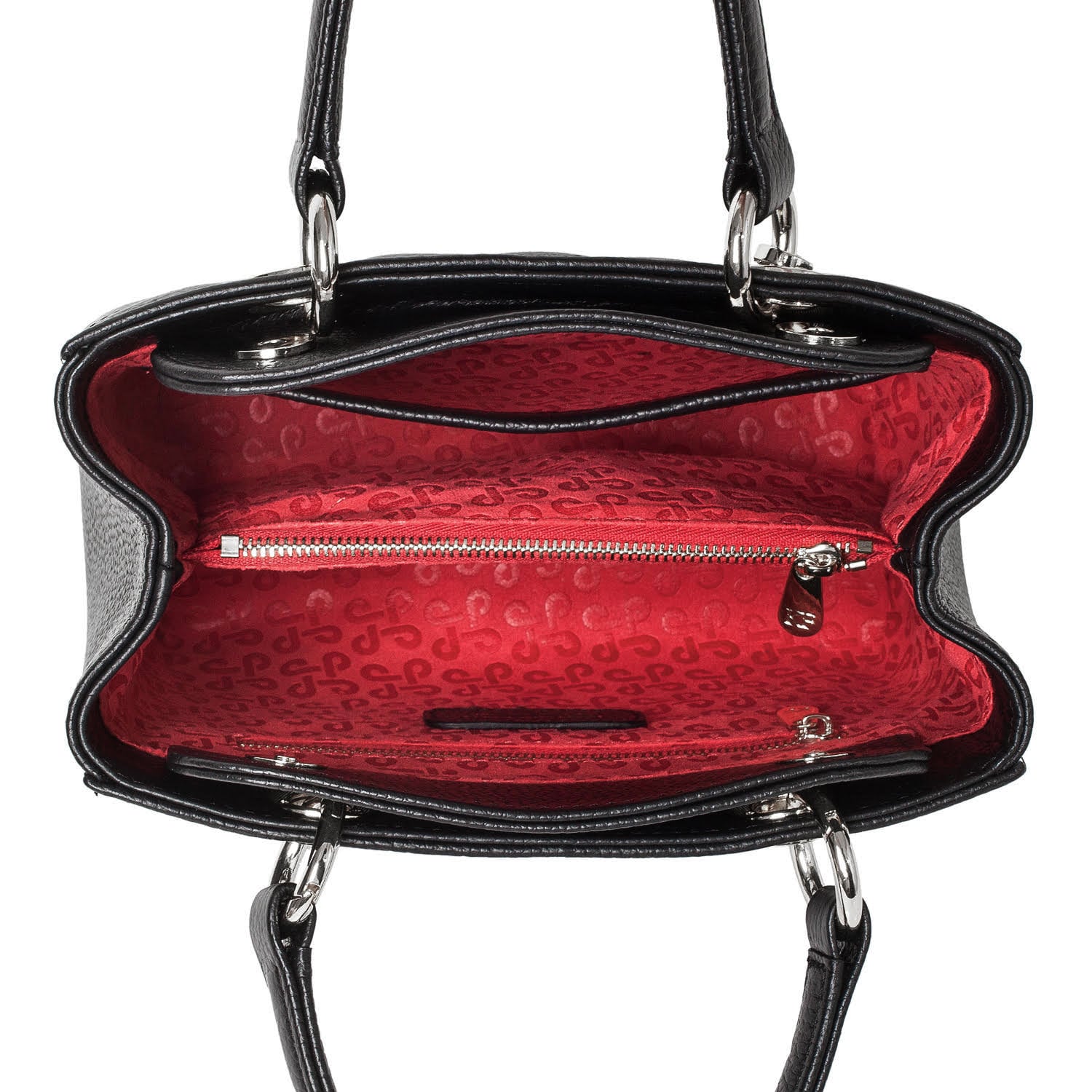Black genuine leather handbag from ukrainian designer Katerina Fox. This model is designed for women who appreciate the sleek design combined with functionality and comfort. High-quality and reliable hardware ensure long service bags. Inside the bag are three spacious compartments, one with zip, two patch pockets and one zippered pocket closes with a zipper. The bottom of the bag protected by metal feet.