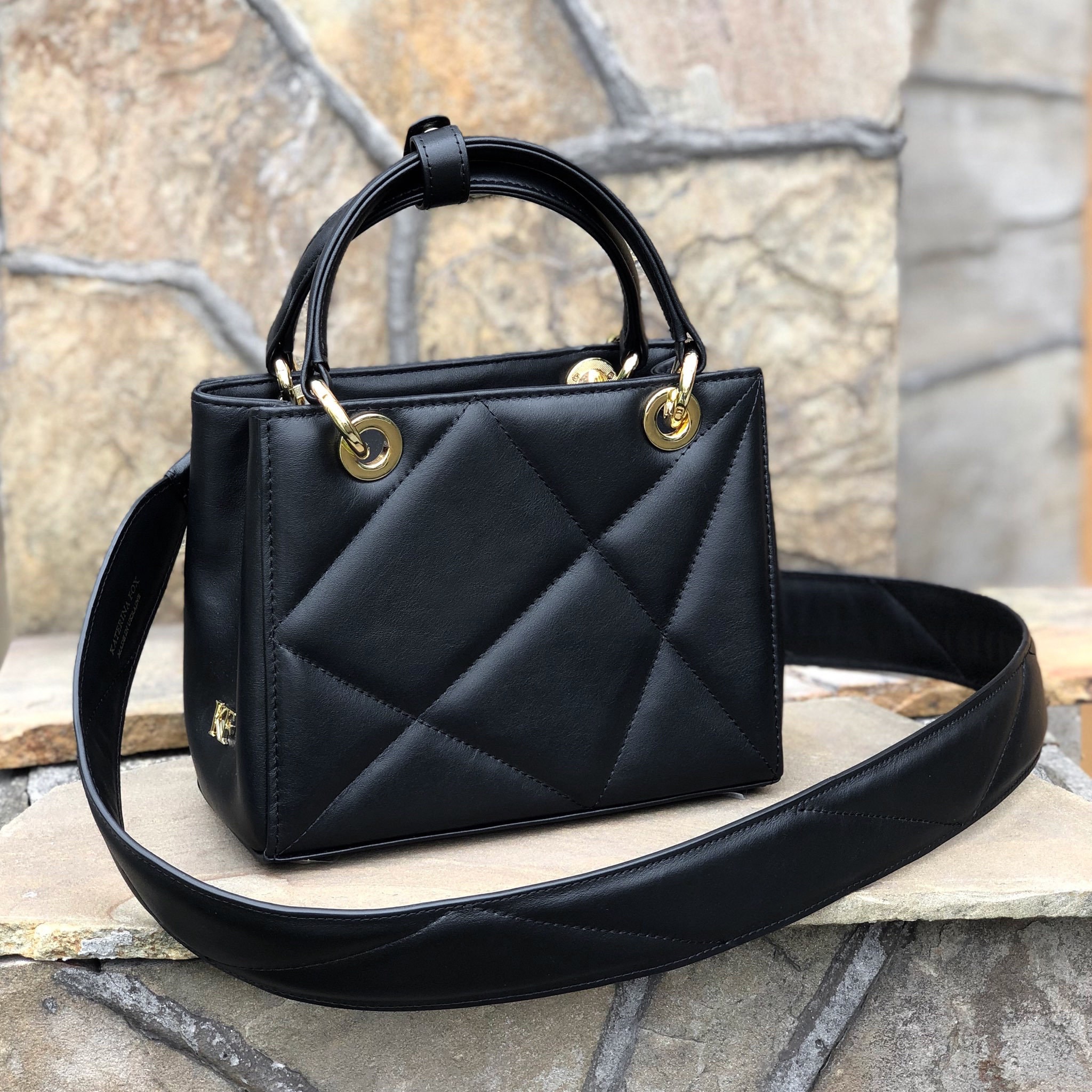 Leather Top Handle Bag, Black Patent Leather Handbag Top Handle, Women's Leather Bag KF-4486