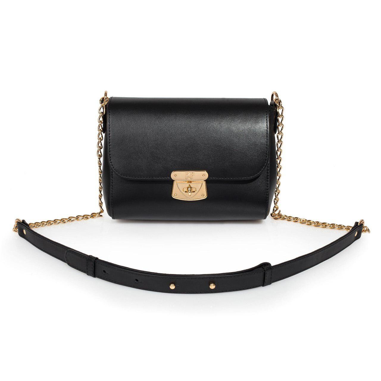 Black genuine leather woman shoulder bag from ukrainian designer Katerina Fox. Fashionable and elegant modern bag KF for bright girls and women. This bag is able to attract attention and highlight your exquisite taste. Inside the bag is one large compartment and a convenient zippered pocket for small items, closes the bag on the clasp. The bag is comfortable to wear on the shoulder or across the shoulder. If you are planning to buy excellent leather bag at an affordable price, this handbag is the right choice!