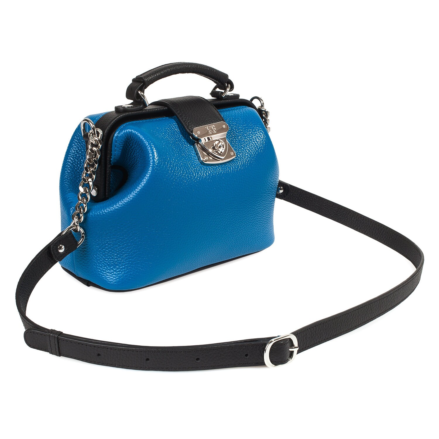 Blue genuine leather woman shoulder bag from ukrainian designer Katerina Fox. Fashionable and elegant modern bag KF for bright girls and women. This bag is able to attract attention and highlight your exquisite taste. The internal space of a bag is equipped with one spacious compartment and one zipper pocket. The bag is closed with a zipper. The length of the strap is adjustable. The kit also includes a storage bag.