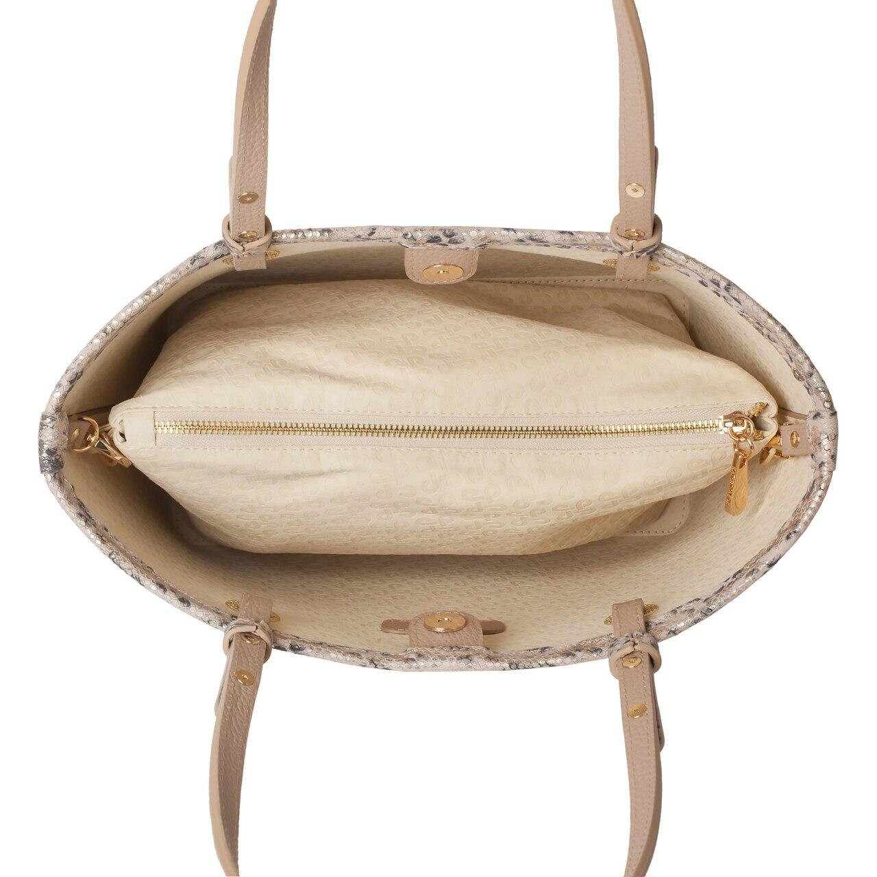 Beige genuine leather tote bag from ukrainian designer Katerina Fox, which perfectly combines sleek design, functionality and comfort. Durable, comfortable, adjustable length leather handles allow you to carry the bag KF on the shoulder. All accessories for this manufacturer makes the same factory as for Michael §¬ors, Calvin Klein, DKNY and other brands. Inside the bag one large compartment that closes the bag on the button-magnet. Included is a leather purse with zipper, which can be used for keys or wallet. If you are planning to buy a luxury bag at an affordable price, this bag is the right choice!